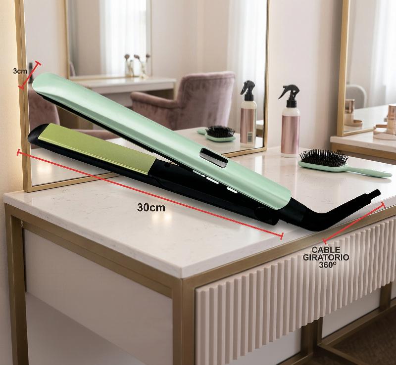 Alcanza 230 °C de temperatura máxima y 160 °C de temperatura mínima. Incluye 3 niveles para planchar. La pantalla es digital. -Pantalla Digital de Temperatura -30 diferentes temperaturas -Calentamiento instantáneo en 30 segundos -Placas flotantes largas de 110 mm para un estilizado mas rápido -Auto apagado después de 60 minutos -voltaje 110V -Cable giratorio