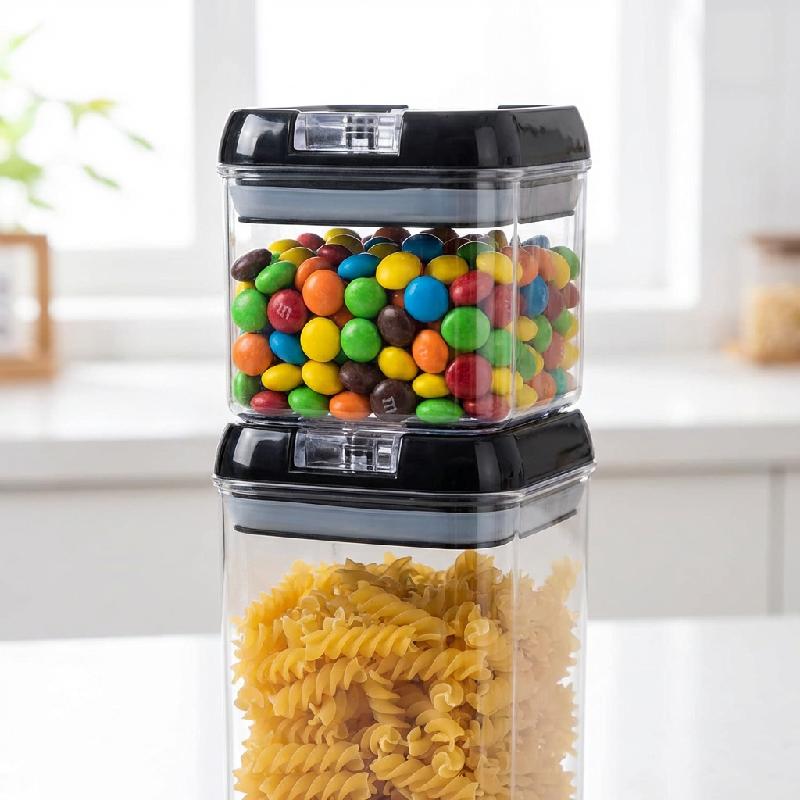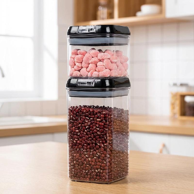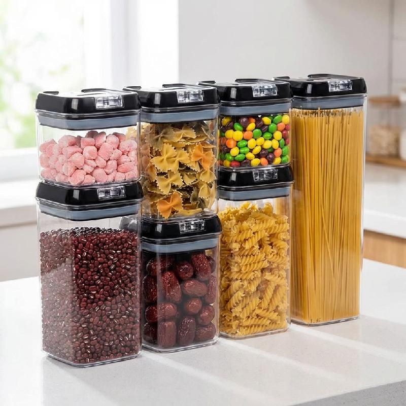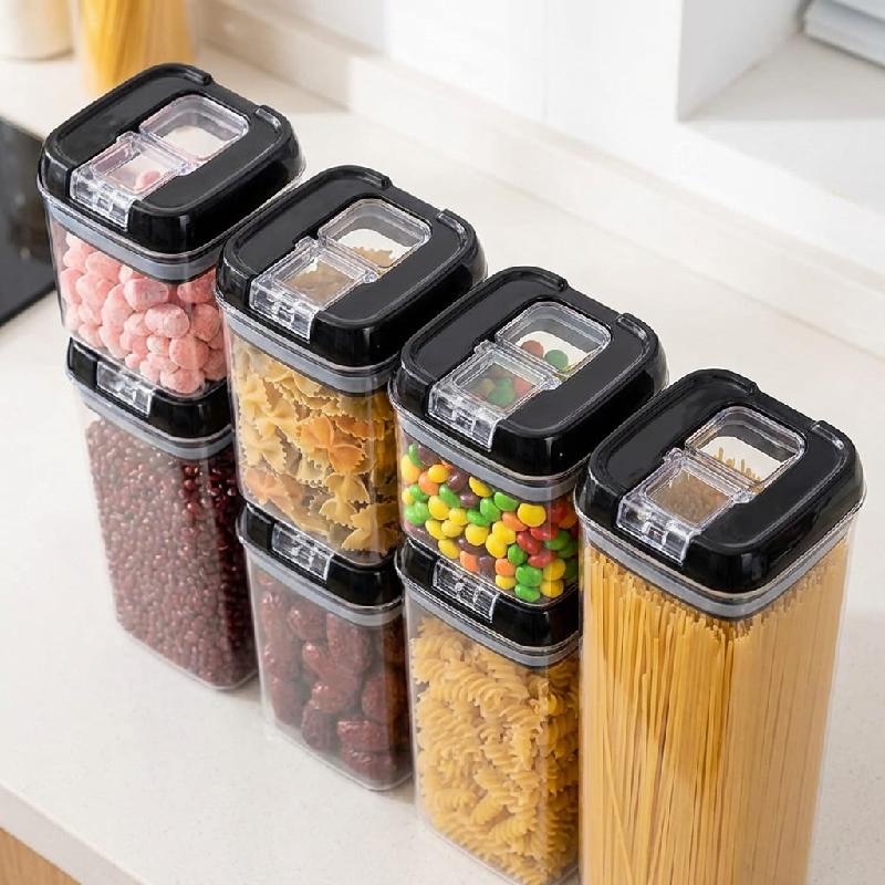 Pack De 7 Contenedores Para Alimentos Herméticos, son prácticos recipientes de cierre fácil, perfectos para almacenar desde harina, galletas, aperitivos, pasta, café, arroz, azúcar, hasta porciones más pequeñas de cereales. Estos recipientes de plástico aportan orden y armonía a tu cocina. Son fáciles de usar y mantener.