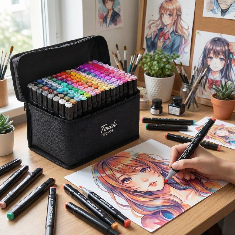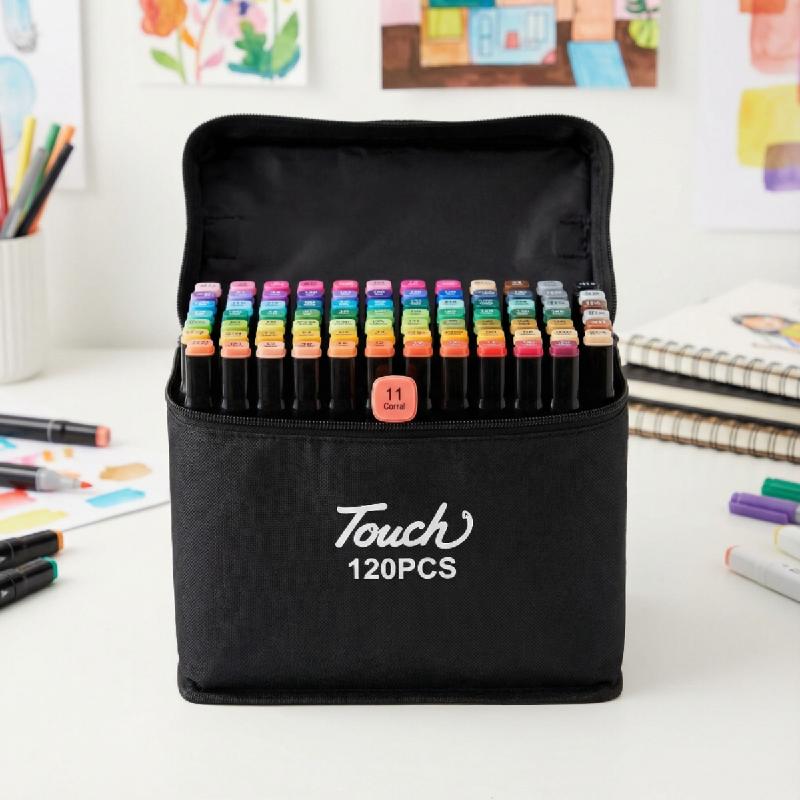 - Set profesional de 120 marcadores X120 a base de alcohol de la marca Touch, ideales para artistas, estudiantes y aficionados al dibujo e ilustración.