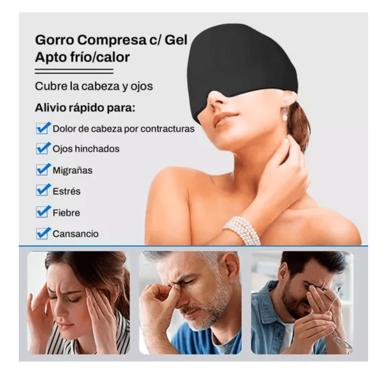 GORRO ANTIFAZ GEL MIGRAÑA FRIO CALOR REUTILIZABLE F1024