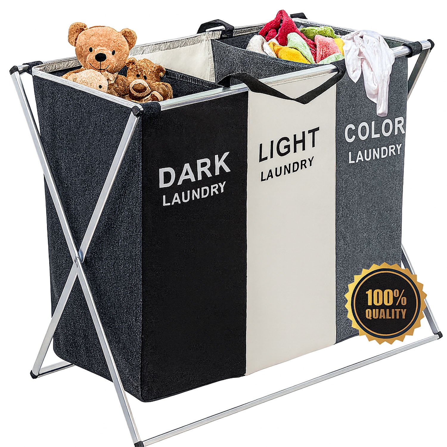 CESTA CANASTA ORGANIZADOR ROPA DE 3 COMPARTIMENTOS PLEGABLE H15636