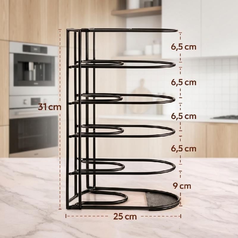ORGANIZADOR OLLAS SARTENES ESTANTE PORTA COCINA EXPANDIBLE METAL 5 ESPACIOS SOPORTE TAPAS CF049