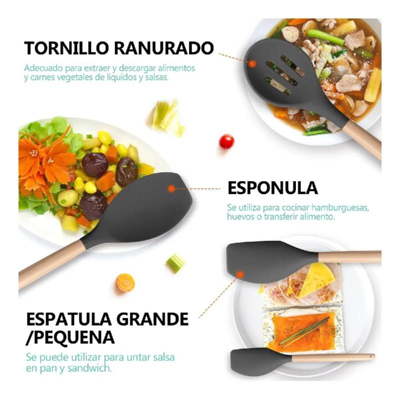 1 x Juego de 11 Utensilios de Silicona
