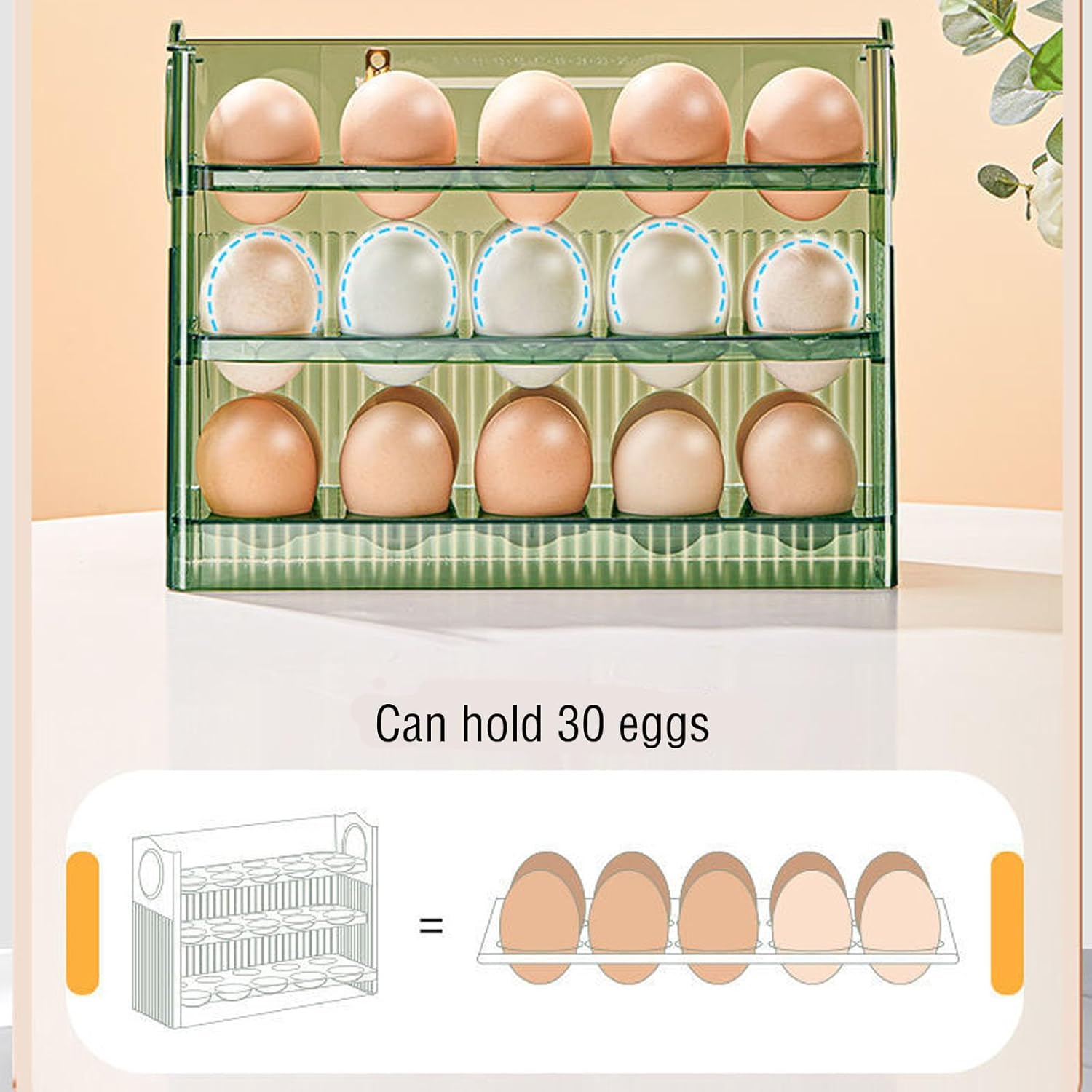 - La caja de almacenamiento tiene creatividad simple, ahorro de espacio, diseño multicapa, gran capacidad y perfecto para el almacenamiento de los huevos.