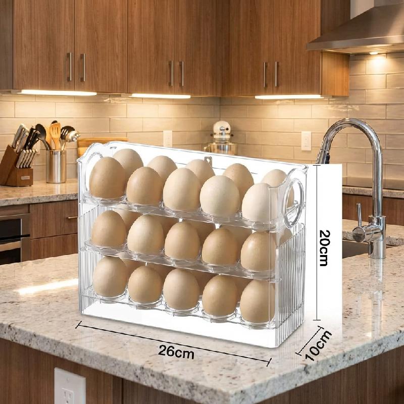 - La caja de almacenamiento tiene creatividad simple, ahorro de espacio, diseño multicapa, gran capacidad y perfecto para el almacenamiento de los huevos.