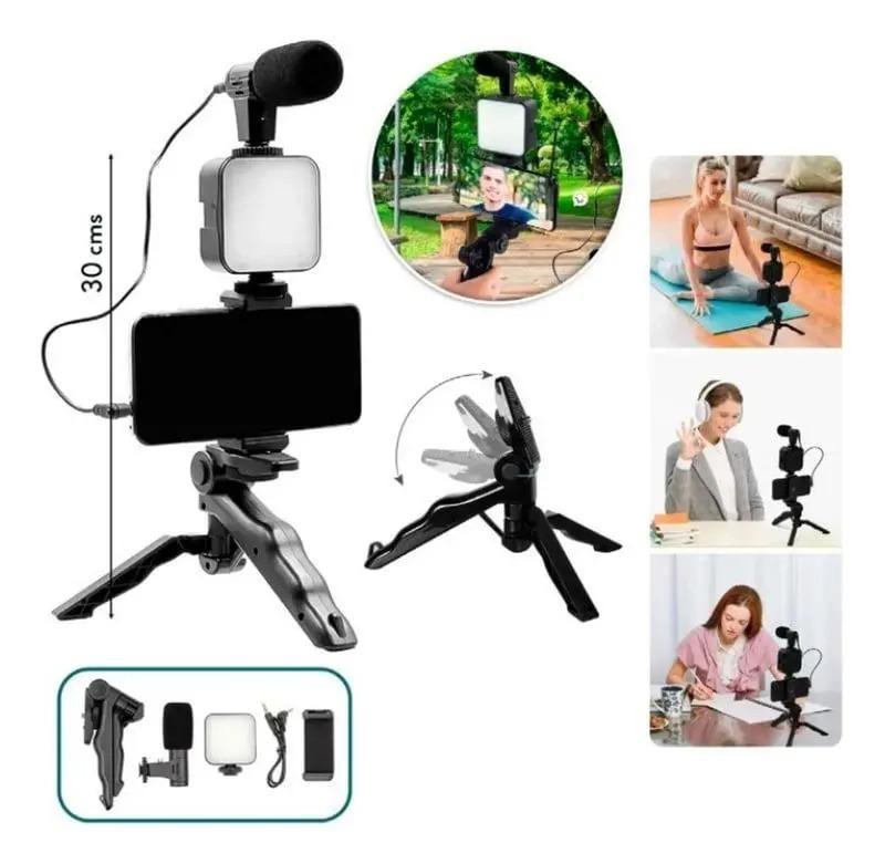 KIT DE VLOGGING PARA TELÉFONO INTELIGENTE, EQUIPO DE GRABACIÓN DE VÍDEO CON TRÍPODE, OBTURADOR DE LUZ LED PARA CÁMARA, SET VLOGGER DE YOUTUBE