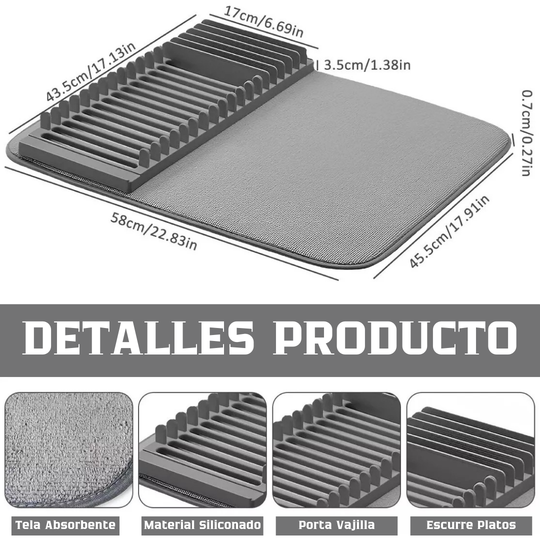 ESCURRIDOR ORGANIZADOR DE PLATO CON TAPETE ABSORBENTE 117494-2 F1014