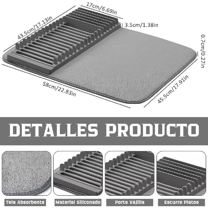 Diseño 2 en 1: La combinación de la almohadilla de secado y el estante de drenaje, el efecto de drenaje es más efectivo y la almohadilla de secado puede absorber el agua drenada del estante de drenaje, mantiene la encimera limpia e higiénica.