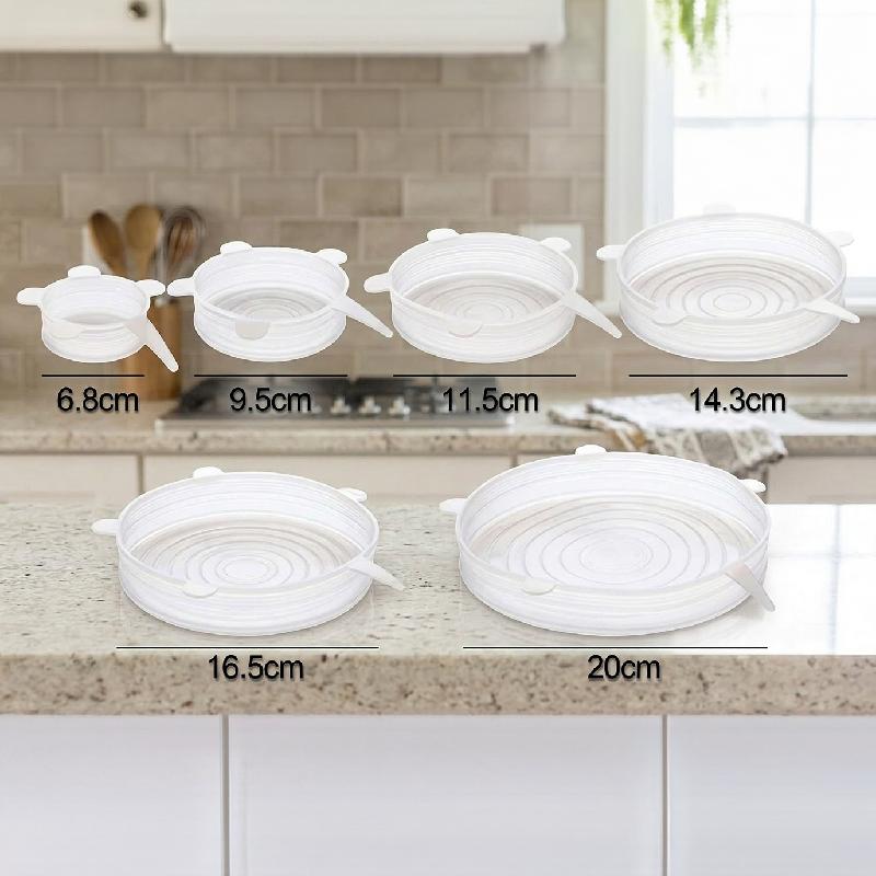 TAPAS DE SILICONA ELÁSTICAS REUTILIZABLES AJUSTABLES PARA RECIPIENTES DE VIDRIO PLÁSTICO Y METAL PACK X6 H745956