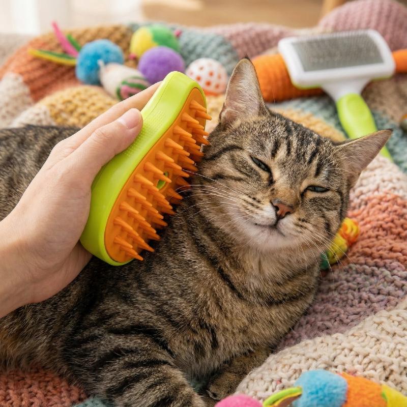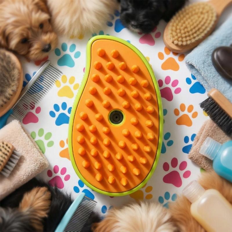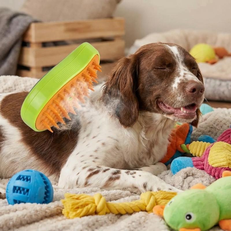 -Cepillo de vapor 3 en 1 y masajeador para mascotas, diseñado para desenredar, limpiar y promover un pelaje brillante y saludable.