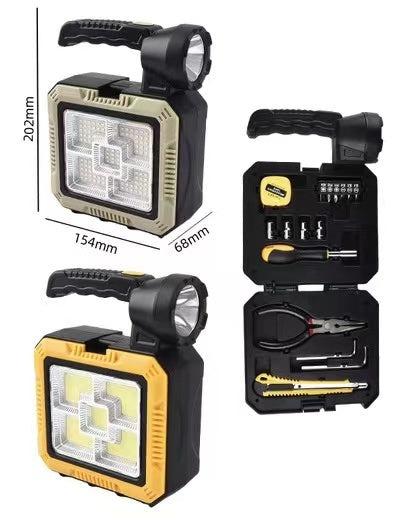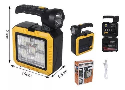Batería de larga duración: Horas de iluminación continua para que nunca te quedes a oscuras. Kit de herramientas: Incluye todo lo necesario para reparaciones rápidas y emergencias. Versatilidad total, Úsala como linterna, lámpara de emergencia y cargador solar.
