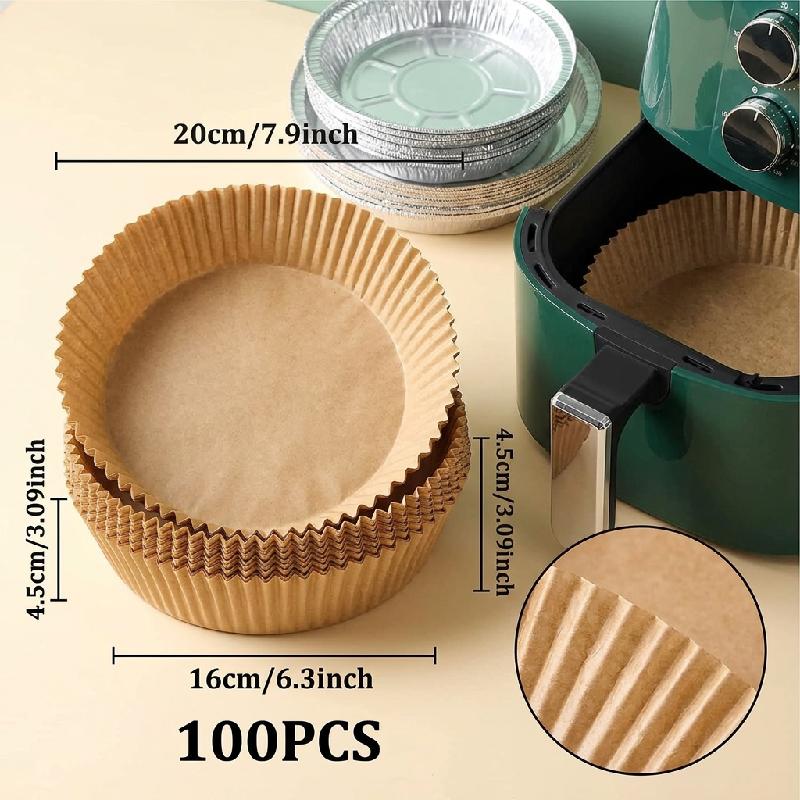 Este paquete contiene 100 papeles para airfryer de 16 cm para freidoras desde 2.6 a 4.7 litros