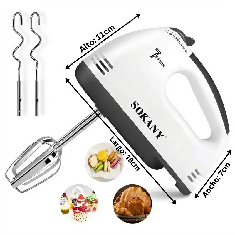 BATIDORA ELÉCTRICA DE MANO SOKANY 180W 7 VELOCIDADES PARA REPOSTERÍA VARILLAS DE ACERO INOXIDABLE 110V SK-133 H587596