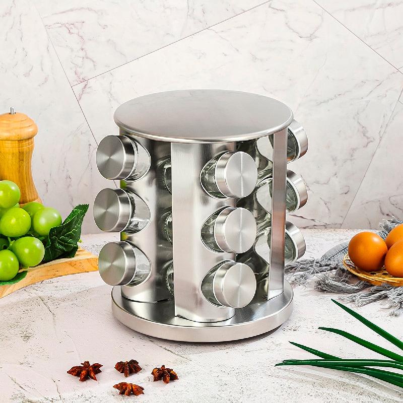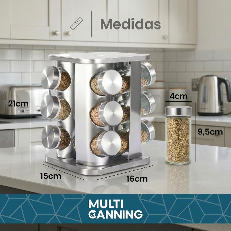 Organizador con 12 frascos para almacenar variedad de especias y condimentos.