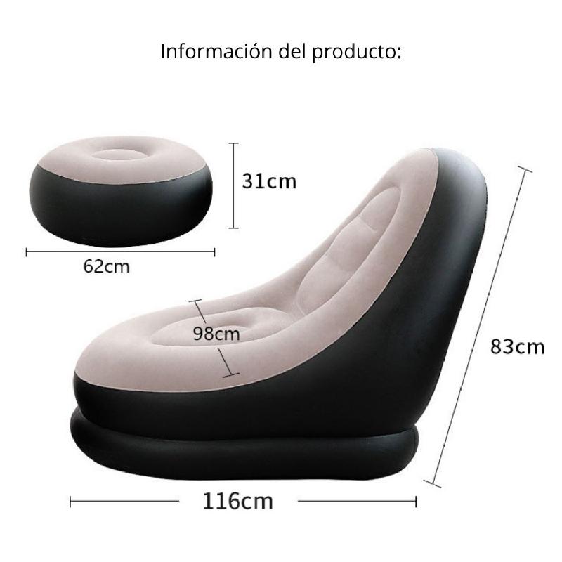 SOFÁ INFLABLE MÁS PUFF ERGONÓMICO PORTÁTIL RESISTENTE AL AGUA PARA INTERIOR Y EXTERIOR FÁCIL DE INFLAR MU-IN01 G1523
