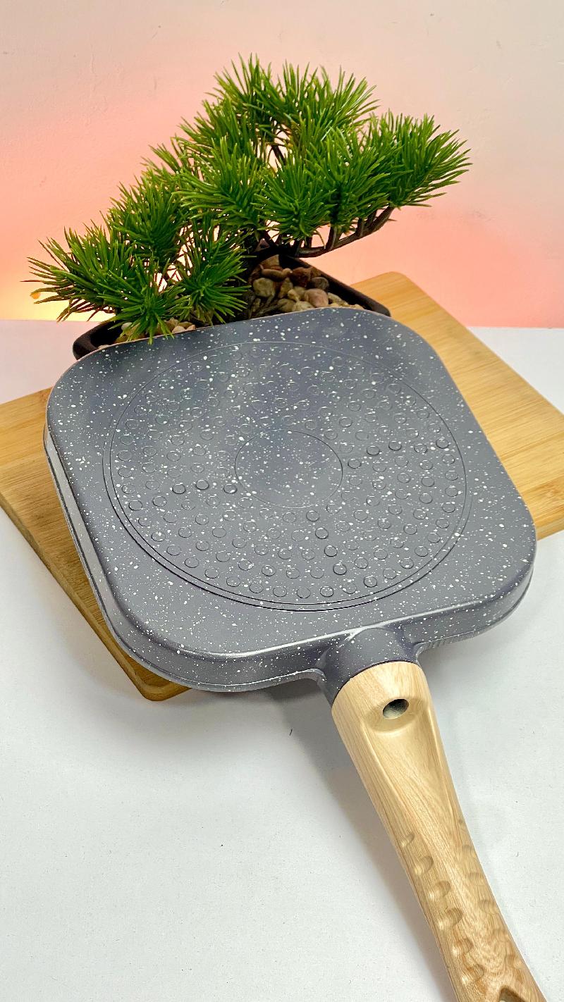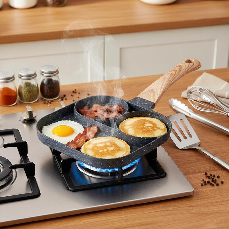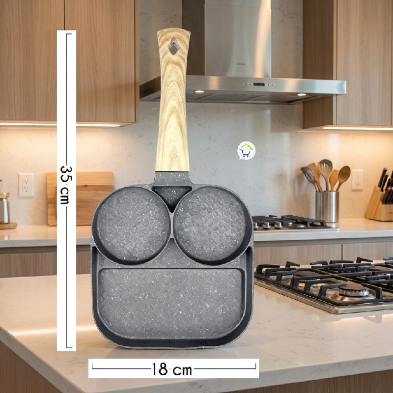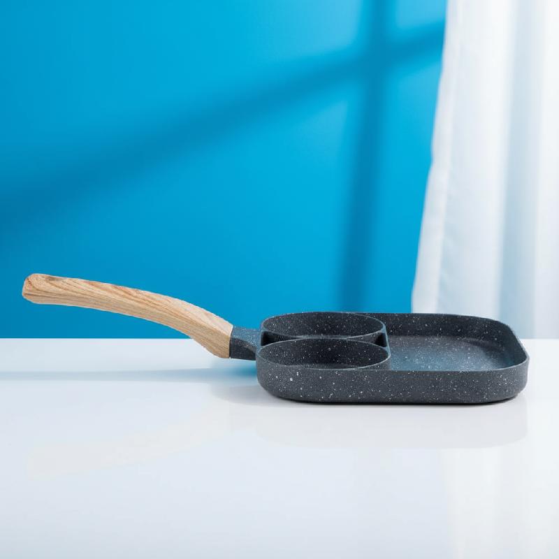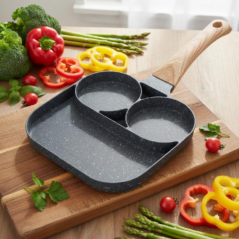-Sartén antiadherente de piedra con 3 compartimentos para cocinar varios alimentos al mismo tiempo.