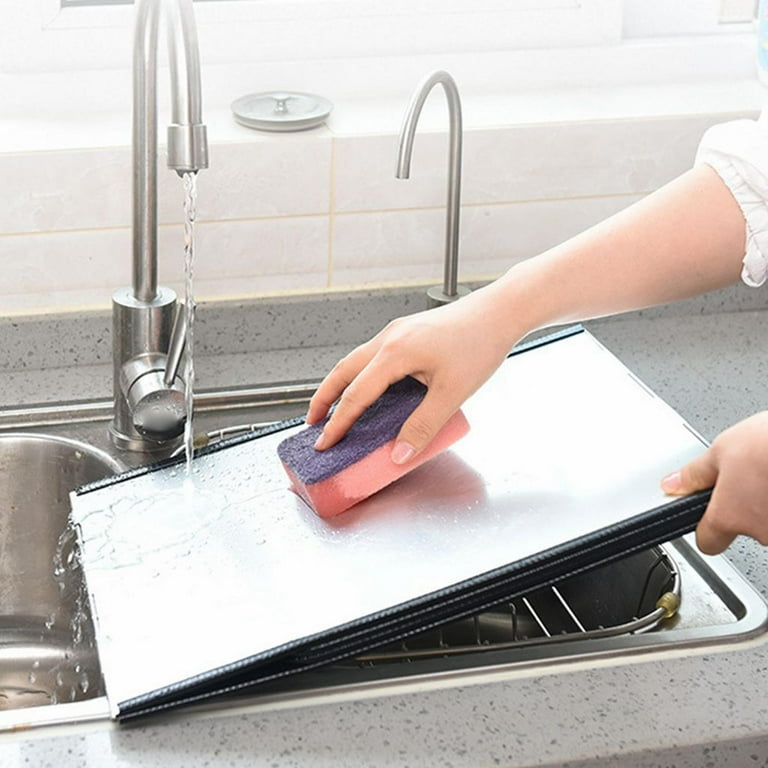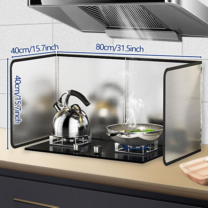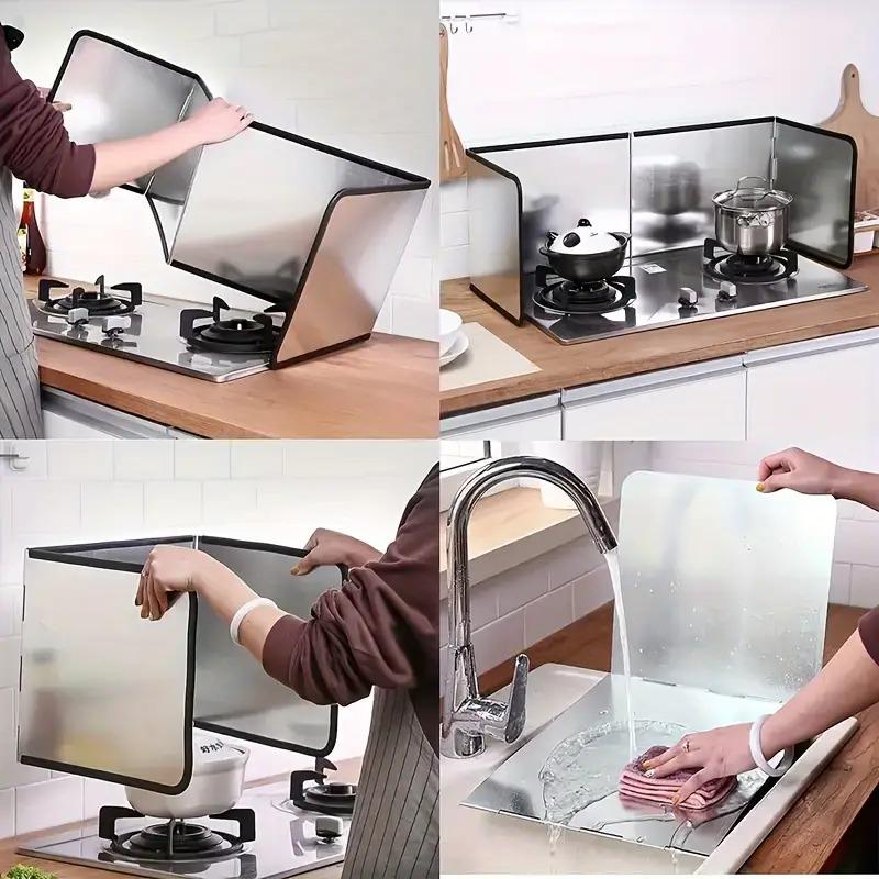 - Despliega y rodea este protector contra salpicaduras alrededor de tu estufa para evitar que el aceite o los alimentos salpiquen mientras cocinas.