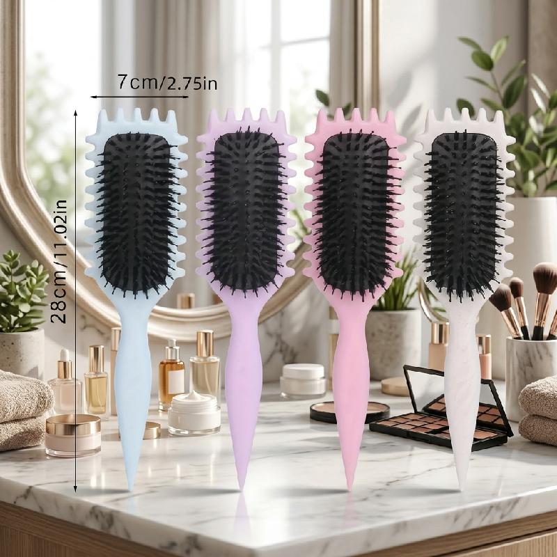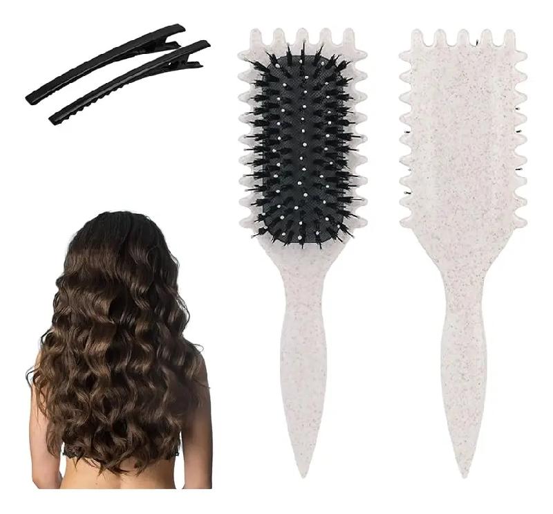 Mango ergonómico y diseño especial de dientes: el cepillo para definir rizos cuenta con bordes laterales únicos que dividen suavemente y estilizan los rizos, creando sin esfuerzo grumos bien definidos y evitando el encrespamiento.