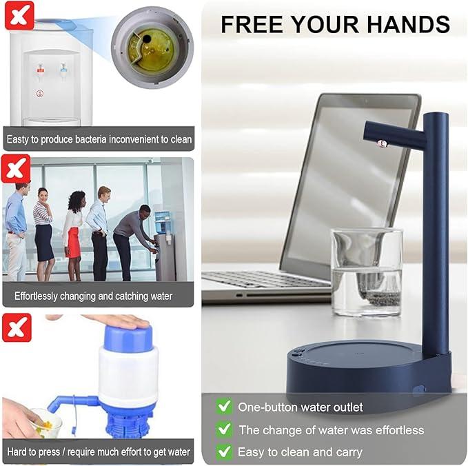 DISPENSADOR DE AGUA PORTÁTIL CON BASE BOMBA ELÉCTRICA RECARGABLE 1800MAH 6 VOLÚMENES PLÁSTICO ABS H45996