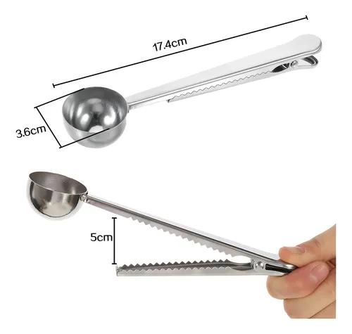 Cuchara/cuchara medidora de café molido de acero inoxidable 304 de grado alimenticio con clip para bolsa.