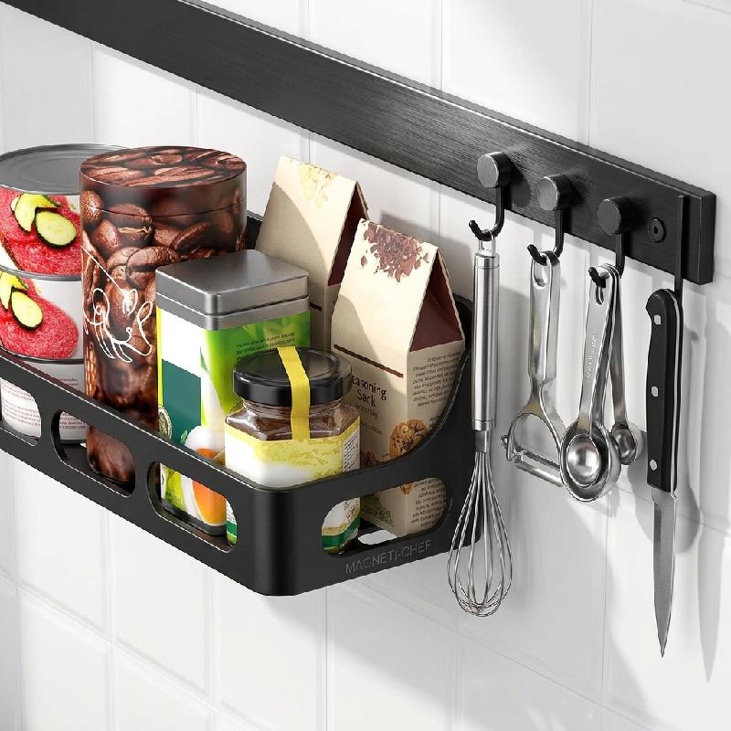 Conveniente y práctico: en primer lugar, la succión magnética no caerá en el problema de las marcas adhesivas que quedan en la pared. En segundo lugar, magnetiza o monta el estante de condimentos al alcance de la mano, puedes encontrar las especias que deseas más rápidamente, sin necesidad de hurgar en el gabinete desordenado, ahorrando tiempo y esfuerzo.