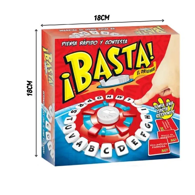 Basta es el divertido juego de palabras, demuestra tu habilidad para encontrar las palabras con las iniciales que indican en el tablero, pero no te limites, vienen 36 cartas con conceptos, pero puedes crear tus propios conceptos para hacer más divertido el juego.