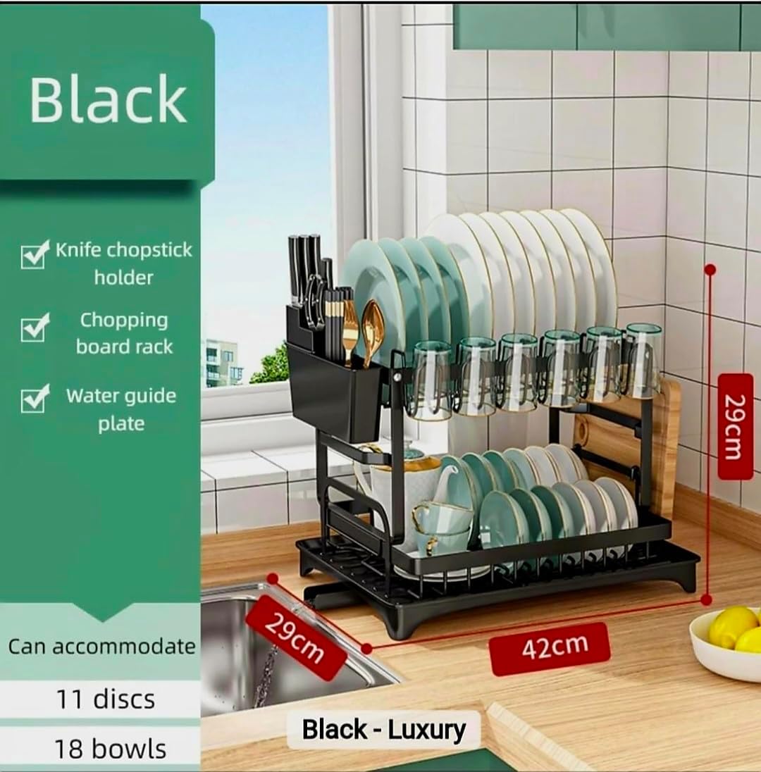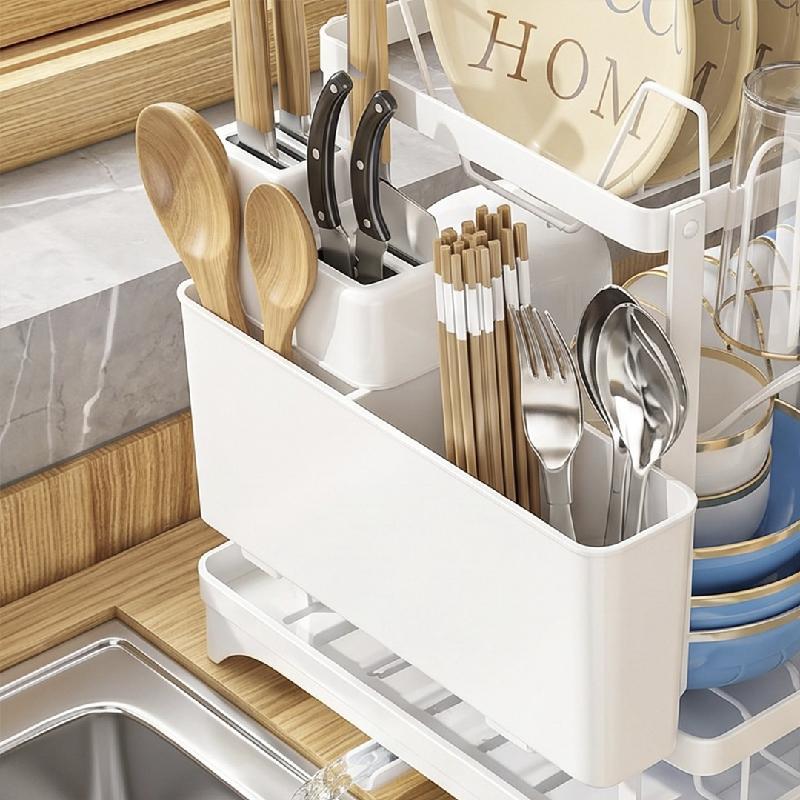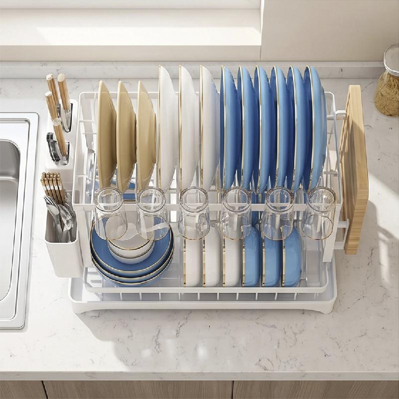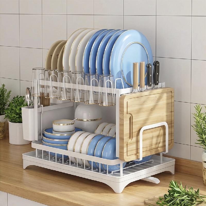 ESCURRIDOR PLATOS SECAPLATOS ORGANIZADOR COCINA REJILLA SECADO 2 NIVELES ACERO INOXIDABLE CON DESAGUE SOPORTE UTENSILIOS H2515