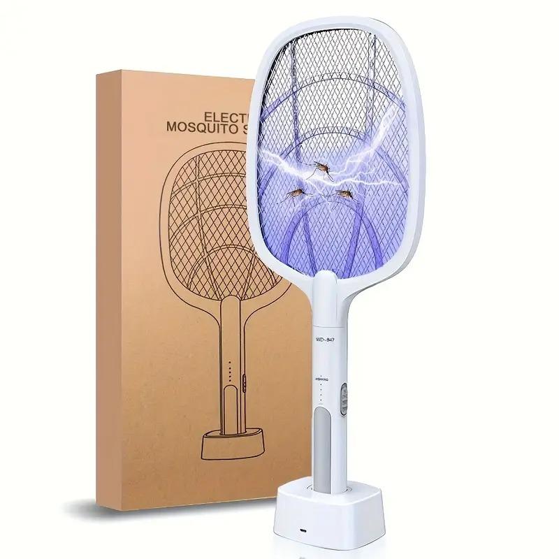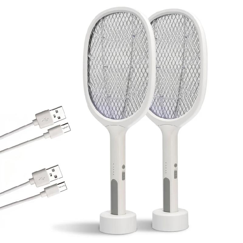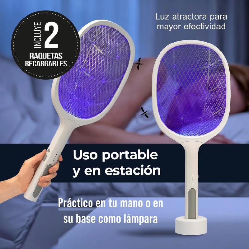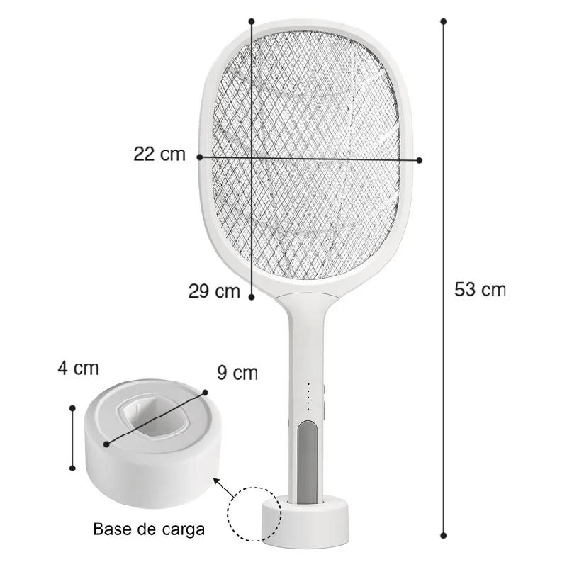 1 x Raqueta con luz LED mata zancudos, 1 x Cable de carga, 1 x Base.