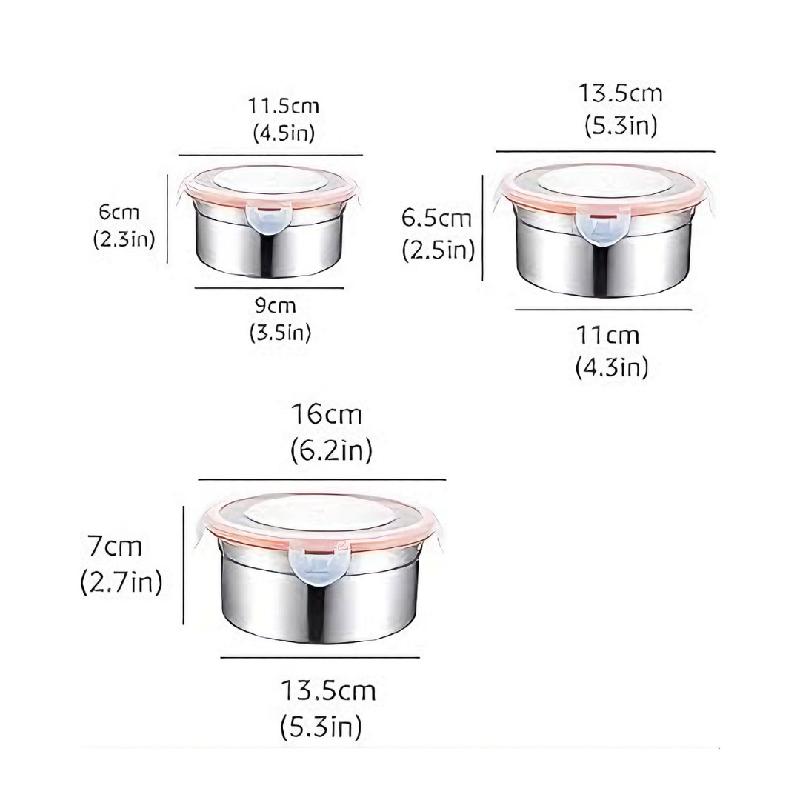 RECIPIENTES DE COMIDA REDONDO EN ACERO X3 F25223 C6 H3693