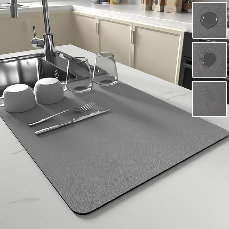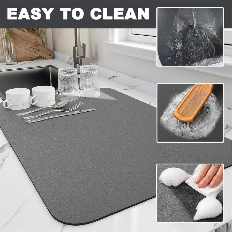 El tapete para secar platos es de alta absorción. La alfombrilla de secado es suave y absorbente, que se puede secar rápidamente y ocultar bien las manchas.