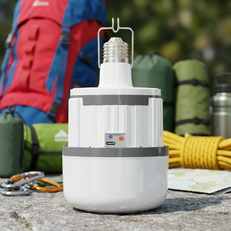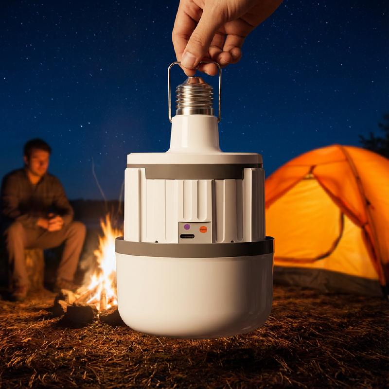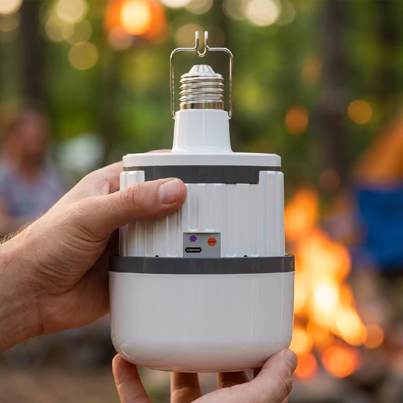 - Bombillo LED recargable y de emergencia de 40W, ideal para iluminación interior con respaldo durante cortes de energía.