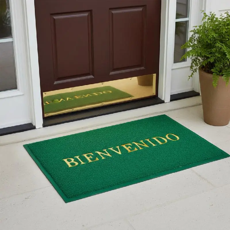 Felpudo de fibra de goma de PVC con estampado "Bienvenido"
