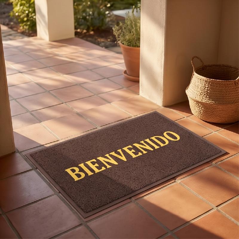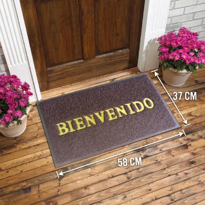 TAPETE ALFOMBRA ENTRADA BIENVENIDO ANTIDESLIZANTE PVC 58X37CM MARRON H45488