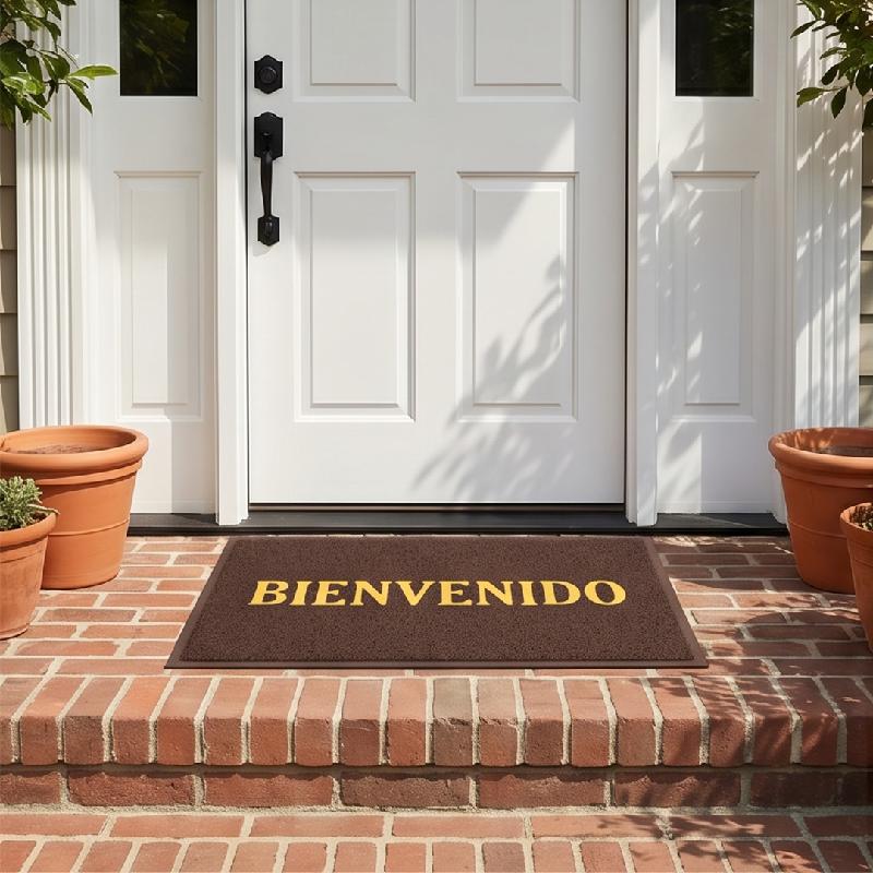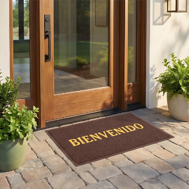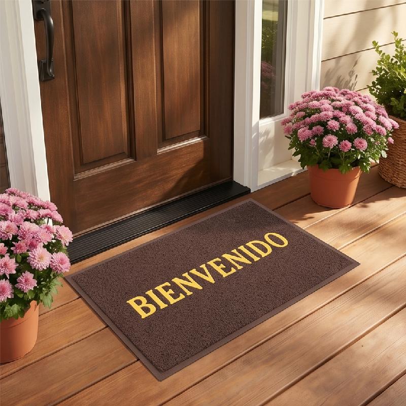 Felpudo de fibra de goma de PVC con estampado "Bienvenido"