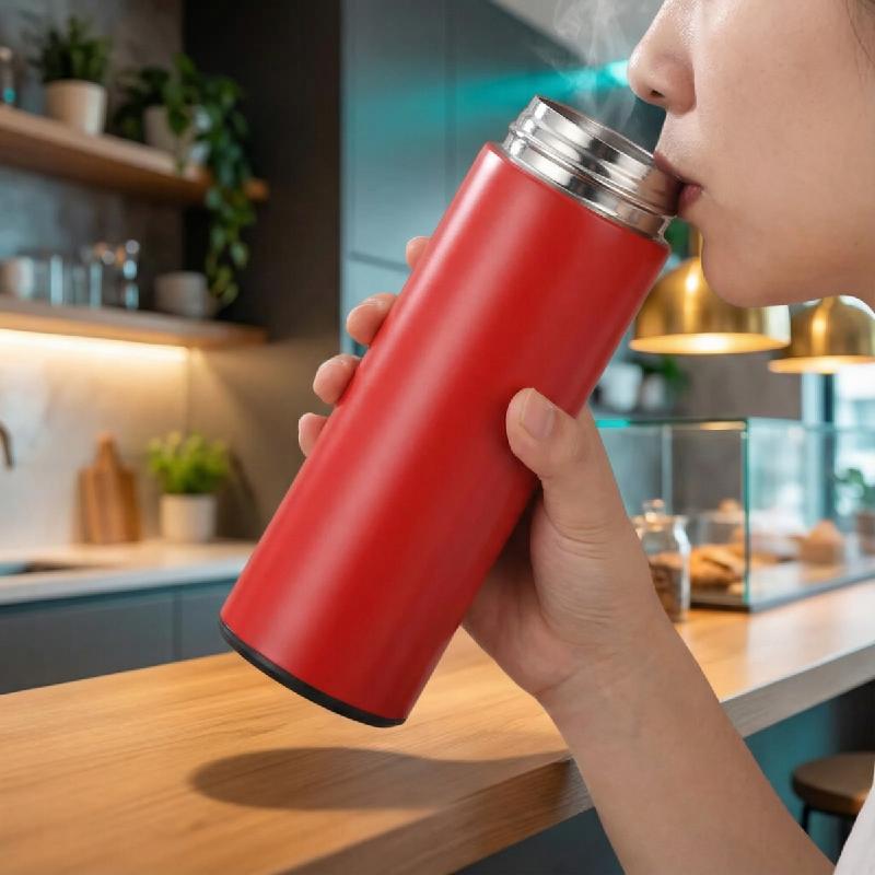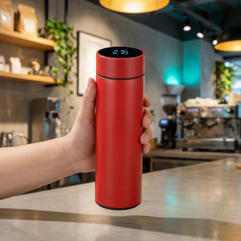 - Botella térmica de 500 ml con display digital LED que muestra la temperatura en tiempo real, ideal para gimnasio, oficina y uso diario.