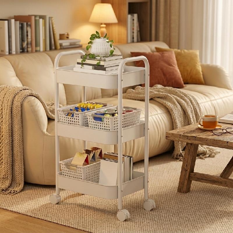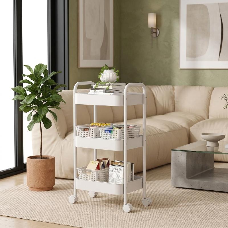 CARRO ORGANIZADOR ESTANTE MOVIL RUEDAS 3 NIVELES MULTIFUNCIONAL ALMACENAMIENTO COCINA BAÑO BLANCO ZWJ-3 HZWJ3B
