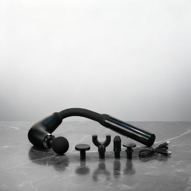 -Masajeador muscular inalámbrico de percusión con mango extensible.