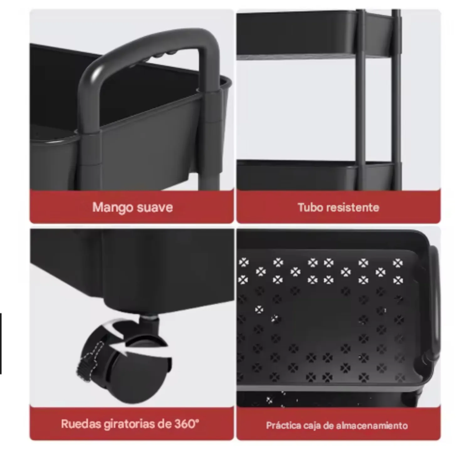 CARRO AUXILIAR ORGANIZADOR COCINA 4NIVELES 5508-4 NEGRO H55084