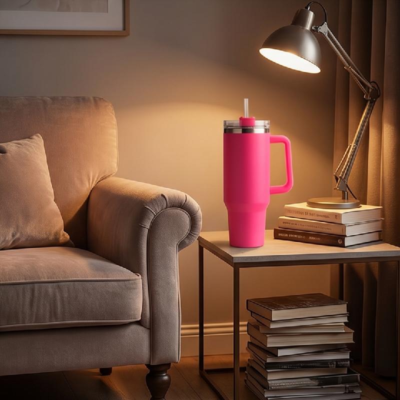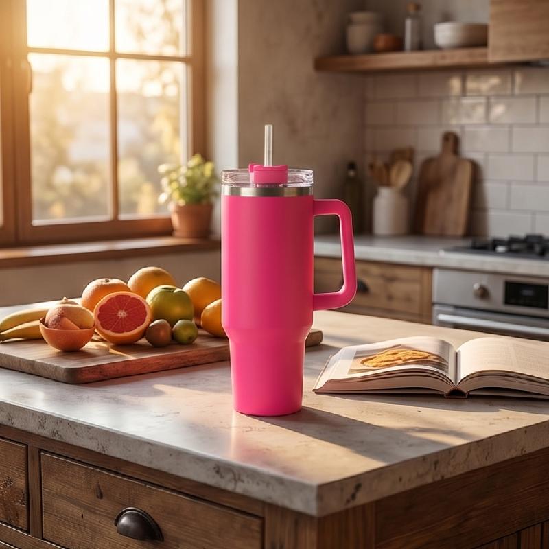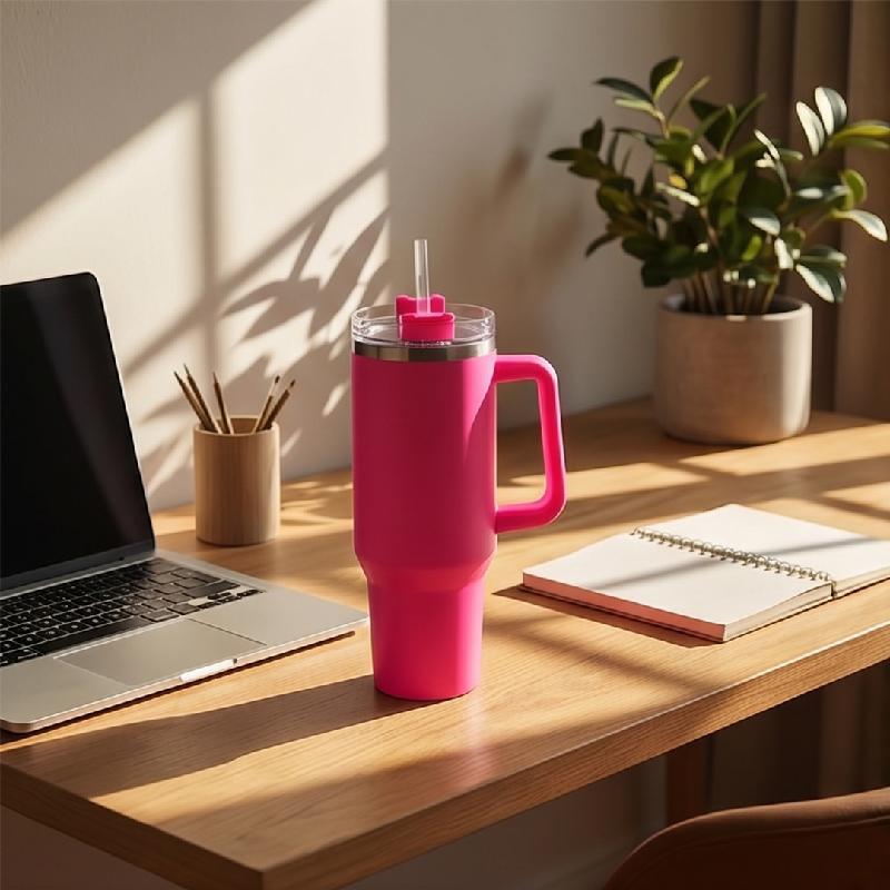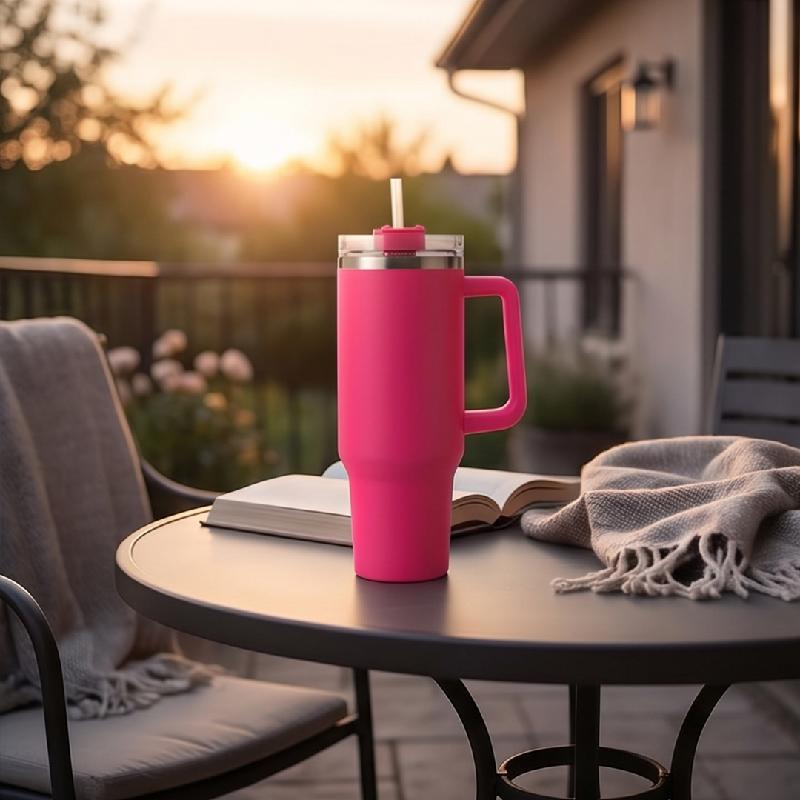 TERMO BOTELLA TIPO STANLEY TERMICA VASO PITILLO ACERO INOXIDABLE 40OZ AISLADO FRIO CALOR PORTAVASOS FUCSIA 2317 T2317-F