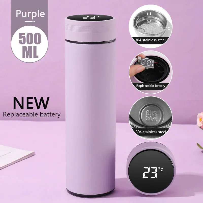 BOTELLA DE AGUA INTELIGENTE TERMO EN ACERO DE PANTALLA LED 500ML LILA REF FINA F25175L