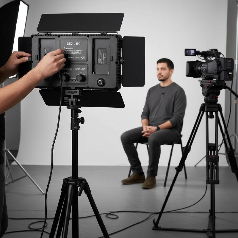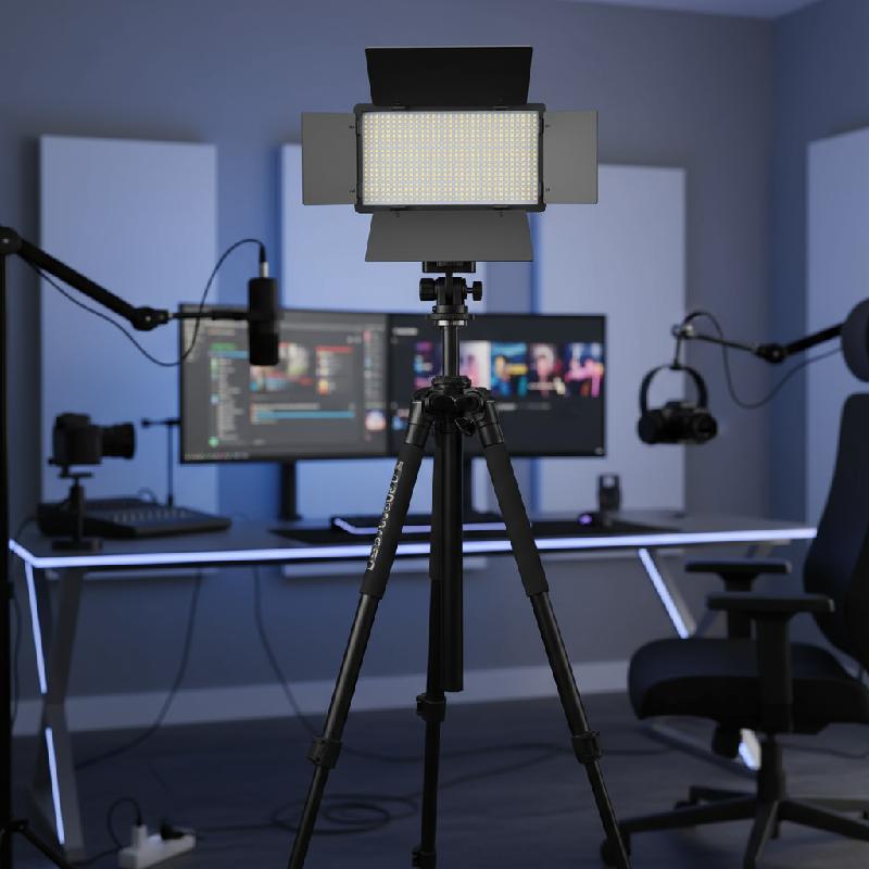 -Tiene lengüetas de aluminio para dirigir la luz, tiene dos botones de atenuación, uno para controlar la intensidad de la temperatura de 3200 K a y el otro para controlar la temperatura de 5600 K.
