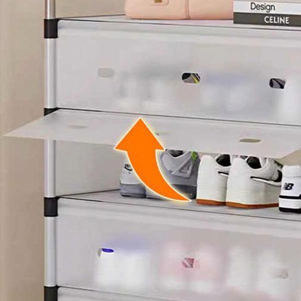 Simplemente abre sus compartimentos, coloca tus pares de zapatos en cada nivel y ciérrala para mantenerlos fuera de la vista. Guarda tu calzado de forma ordenada y limpia, transformando cualquier área en un rincón funcional.