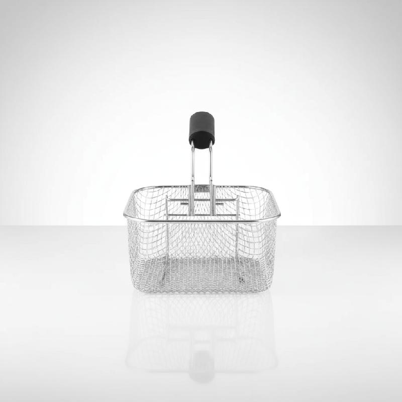 -Canastilla metálica con mango de tacto frío y tapa con ventana, permite supervisar la cocción sin abrir.