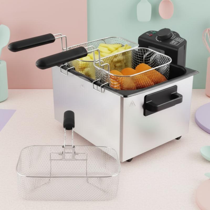 -Incluye tres canastas (dos medianas y una grande) para freír diferentes alimentos al mismo tiempo.