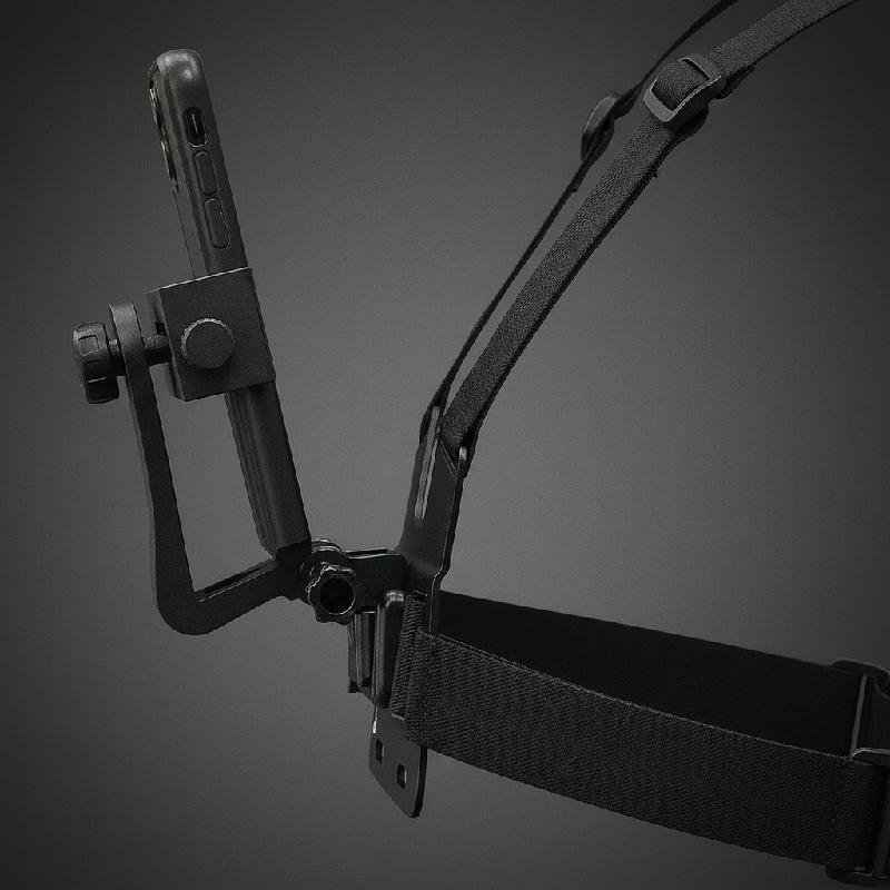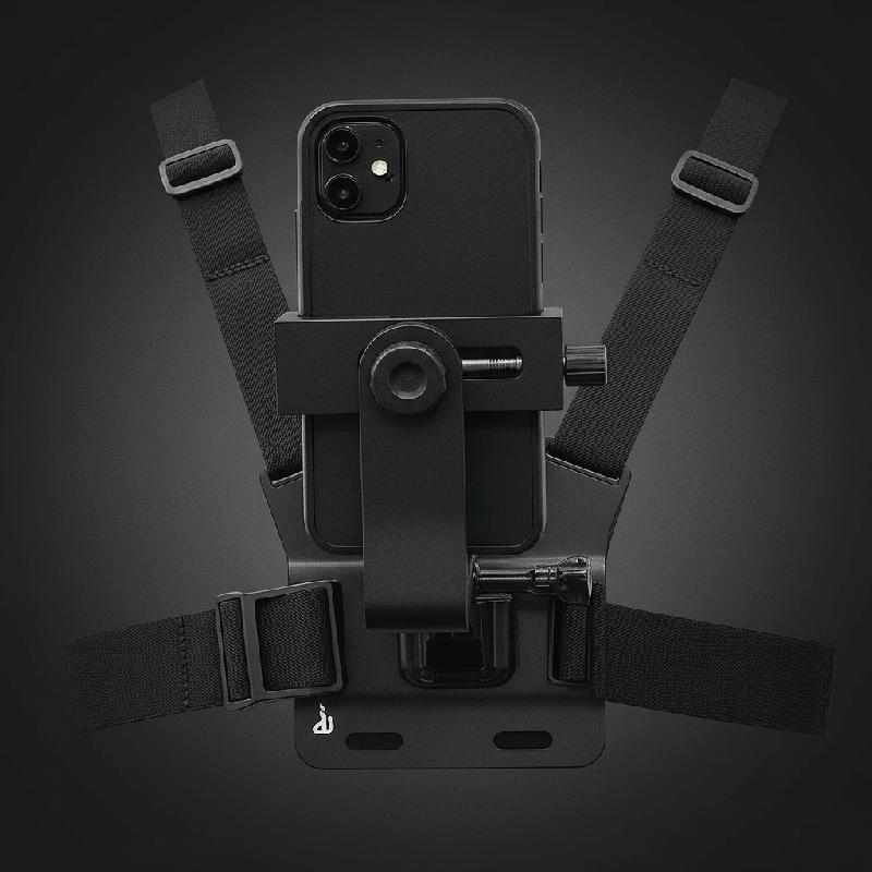 -Soporte de pechera arnés ajustable diseñado para smartphones, ideal para grabaciones en movimiento y actividades deportivas.