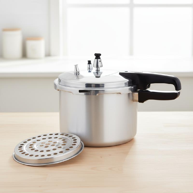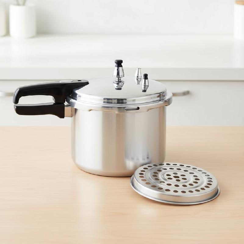 -Cuerpo en aluminio de alta resistencia con tapa en acero inoxidable, ideal para una cocción rápida, segura y uniforme.