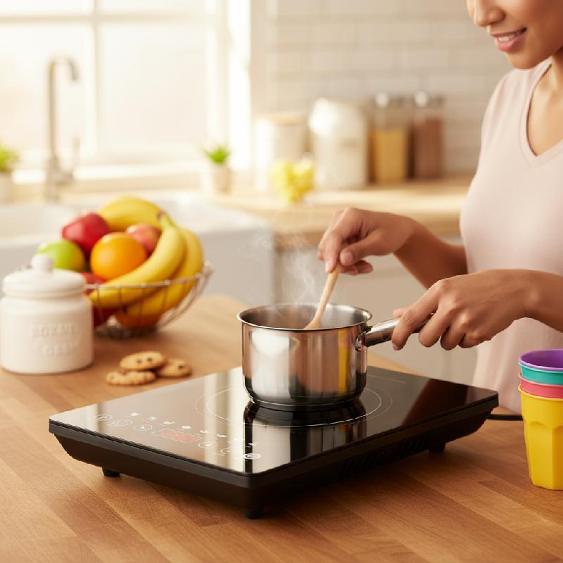 -Cocina eficiente: tecnología de inducción que calienta solo el recipiente, reduciendo el consumo eléctrico.