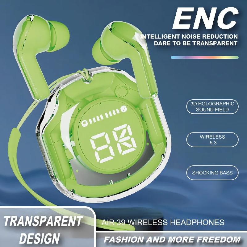 AUDIFONOS AURICULARES BLUETOOTH AIR39 V5.3 VERDE LED A2908V