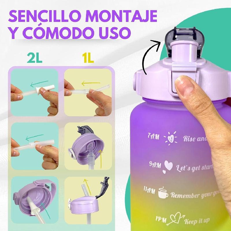 Diseñado con marcador de tiempo y citas inspiradoras, la botella para agua es perfecta para ayudarte a mantenerte motivado para beber suficiente agua durante todo el día. Cuenta con aspecto translúcido y escala de capacidad que te ayuda a medir tu ingesta diaria de agua fácil y claramente. Elección perfecta para entrenamientos, correr, senderismo, ciclismo, camping, yoga o cualquier otro deporte en casa, el gimnasio, la oficina o al aire libre.
