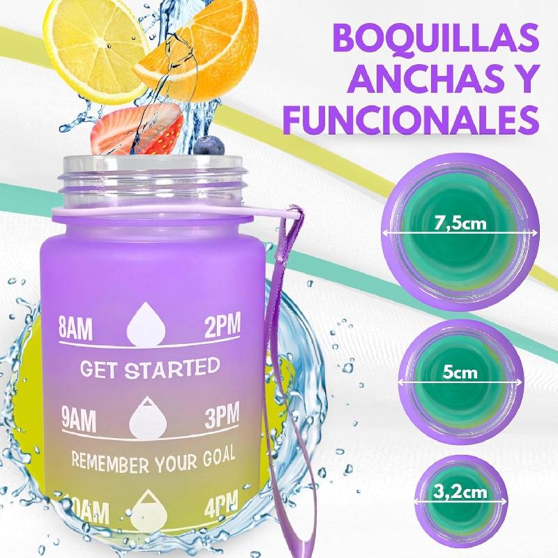 •Boca ancha: La boca ancha diseñada hace que sea fácil llenar la botella deportiva con hielo y fruta